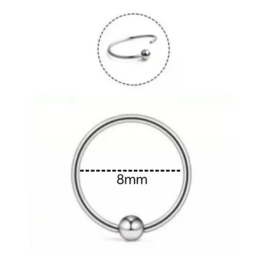 Bem-vindo a loja Mily Piercing Captive Fino Para-Nostril, Nariz, Septo, Cartilagem. Material: Aço Cirúrgico Espessura da Haste: 0.8mm Diâmetro interno: 8mm Diâmetro da bolinha: 2mm Quantidade; 12unidades Atenção; *O piercing abre por torção, a bolinha não sai.