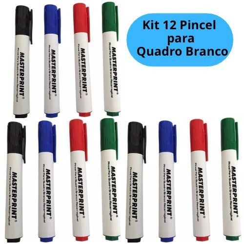 Kit 12 Pincel Quadro Branco Recarregável Nas Cores 3 Azul + 3 Vermelho + 3 Preto + 3 Verde Masteprint