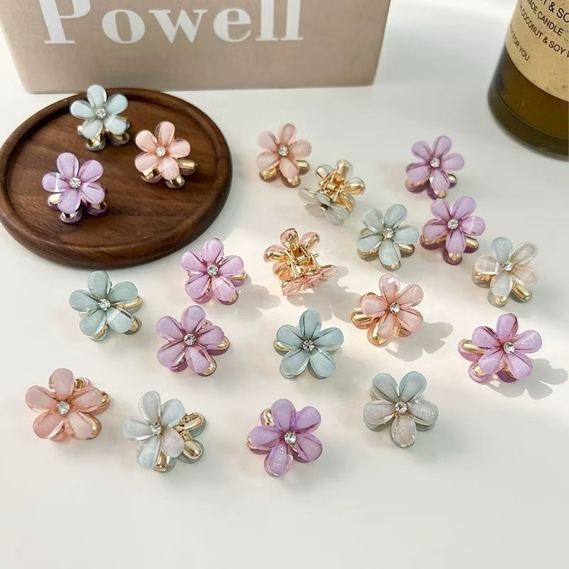 Kit 12 Piranhas /Presilhas Mini Flor Com Pérola/ Cristal e Strass – Grampos de Cabelo Decorativos Para Mulheres