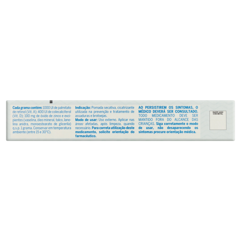 DESCRIÇÃO DO PRODUTO Babymed pomada é ideal para proteger a pele do bebê contra assaduras. Indicada para prevenir assaduras, formando uma camada protetora na pele do bebê que a mantém longe do cocô e do xixi. Deixa a pele do bebê sempre hidratada e bem nutrida, pois possui em sua formulação as vitaminas A e E. Fácil de usar, espalhar, limpar e remover. Pomada dermatológica de uso tópico, externo e pediátrico. MODO DE USAR Limpe cuidadosamente a pele do bebê e aplique a pomada sobre a área a proteger, massageando suavemente. Utilize a cada troca de fraldas. CONTRAINDICAÇÕES Em casos de hipersensibilidade (alergia) aos componentes da fórmula. PRECAUÇÕES Se observar alguma reação desfavorável suspenda o uso e procure um médico. Não aplicar sobre a pele irritada ou ferida. Conservar em local fresco, seco e protegido da luz. Mantenha o produto fora do alcance de crianças.