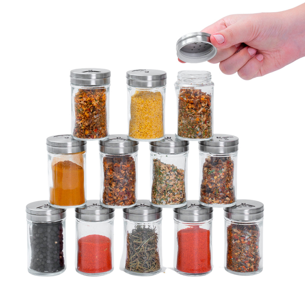 Kit 12 Porta temperos com tampa giratória inox e vidro 90ml - Mozcada