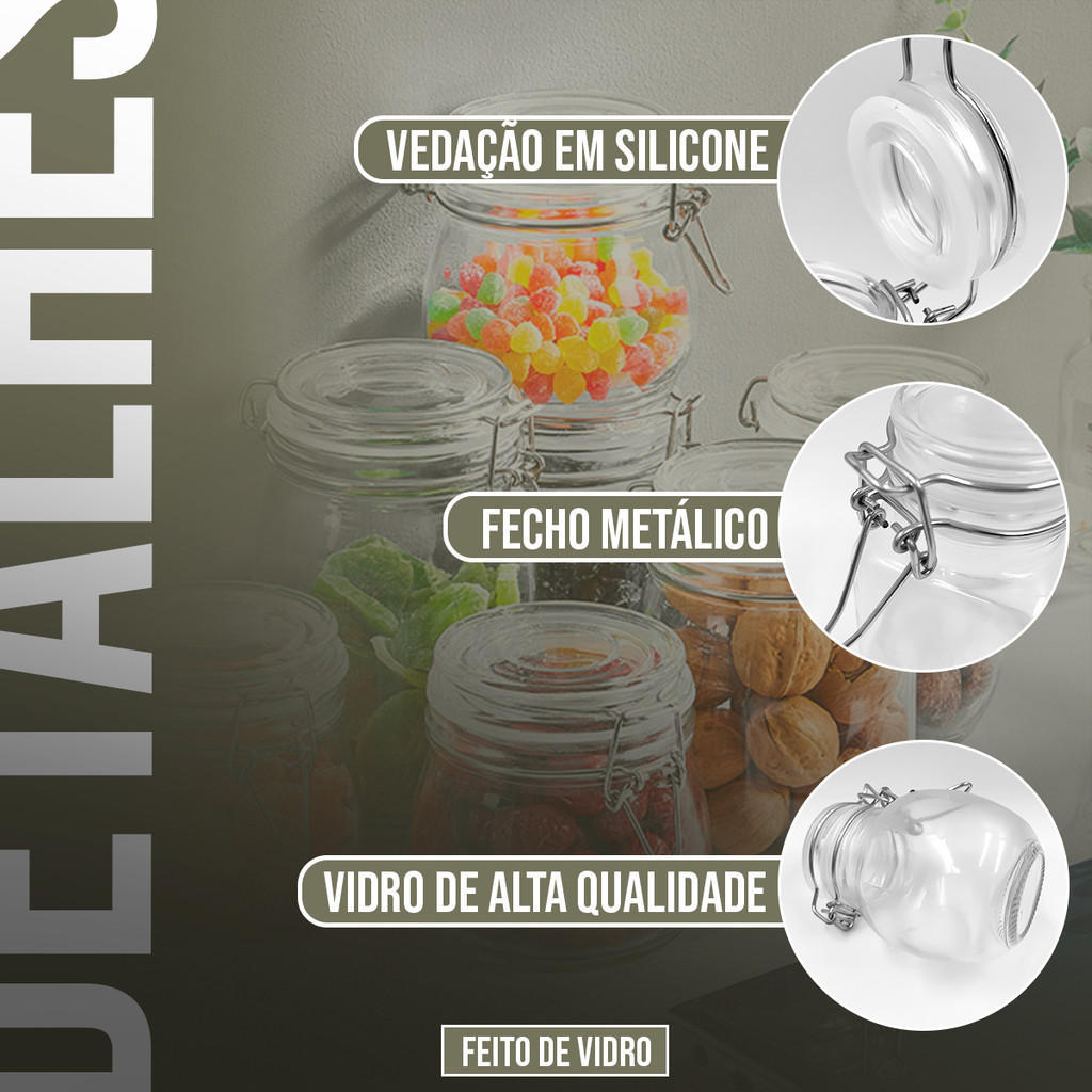 Kit Potes Herméticos de Vidro com Trava e Vedação em Silicone – Armazene com Estilo, Segurança e Organização Se você busca uma forma prática, elegante e eficiente de manter seus temperos e alimentos organizados, o Kit com 12 Potes Herméticos de Vidro com Trava é a escolha perfeita. Desenvolvido para unir estética e funcionalidade, este conjunto proporciona máxima conservação, praticidade e um toque refinado na decoração da sua cozinha ou despensa. Design que encanta e organiza! Com estrutura compacta e acabamento sofisticado, cada pote possui corpo em vidro grosso de alta qualidade e tampa com trava metálica e vedação em silicone, que garante um fechamento hermético e seguro. Sua transparência permite a rápida identificação do conteúdo, tornando o manuseio mais prático e visualmente agradável. Além de trazer beleza ao ambiente, os potes ajudam a economizar espaço e manter tudo no lugar certo. Ideais para quem valoriza uma cozinha bem organizada e funcional, seja no dia a dia ou na rotina de restaurantes, confeitarias e espaços gourmet. Versatilidade para o uso diário! Com capacidade de 100ml por unidade, o kit é perfeito para armazenar diversos tipos de ingredientes: ervas secas, sal, pimentas, condimentos, especiarias, sementes, açúcar refinado ou mascavo, granulados, entre outros itens de pequeno porte. Por serem herméticos, mantêm o frescor, aroma e qualidade dos alimentos por muito mais tempo, evitando contaminações externas e umidade. Esses potes são extremamente funcionais também para uso em eventos, kits de presente, lembrancinhas personalizadas, além de adaptarem-se a diferentes estilos de decoração. Qualidade e durabilidade incomparáveis! Fabricados com materiais seguros e resistentes, os potes são livres de BPA e não retêm odores ou sabores, o que os torna ideais para um uso contínuo e higiênico. Sua vedação por anel de silicone oferece máxima segurança, enquanto a trava metálica permite abrir e fechar com facilidade, sem comprometer o conteúdo armazenado. Mesmo com seu acabamento delicado, o vidro utilizado é reforçado, suportando bem o uso diário e sendo resistente a pequenas quedas. Além disso, seu formato quadrado facilita o empilhamento ou alinhamento em prateleiras e armários. Especificações do Produto: Capacidade: 100ml por unidade Altura: 8 cm Largura: 6,5 cm Comprimento: 6,5 cm Peso aproximado por pote: 123g Material: Vidro de alta qualidade e tampa com trava metálica e silicone Cor: Incolor Livre de BPA Conteúdo da Embalagem: potes herméticos de vidro com tampas de trava e anel de silicone Cuidados com o Produto: Não pode ser levado ao micro-ondas, forno, fogão, freezer ou lava-louças Lavar com detergente neutro e esponja macia Secar imediatamente após a lavagem Evitar o uso de materiais abrasivos para preservar o acabamento do vidro e da trava Solução prática e elegante para uma cozinha mais organizada Organizar os condimentos de forma eficiente e bonita é possível com o Kit 12 Potes Herméticos de Vidro. Cada detalhe foi pensado para oferecer praticidade, segurança no armazenamento e um toque de elegância ao ambiente. Ideal para quem não abre mão de uma cozinha visualmente harmoniosa e bem funcional. Garanta agora mesmo esse conjunto indispensável e transforme sua rotina com mais beleza, frescor e organização.