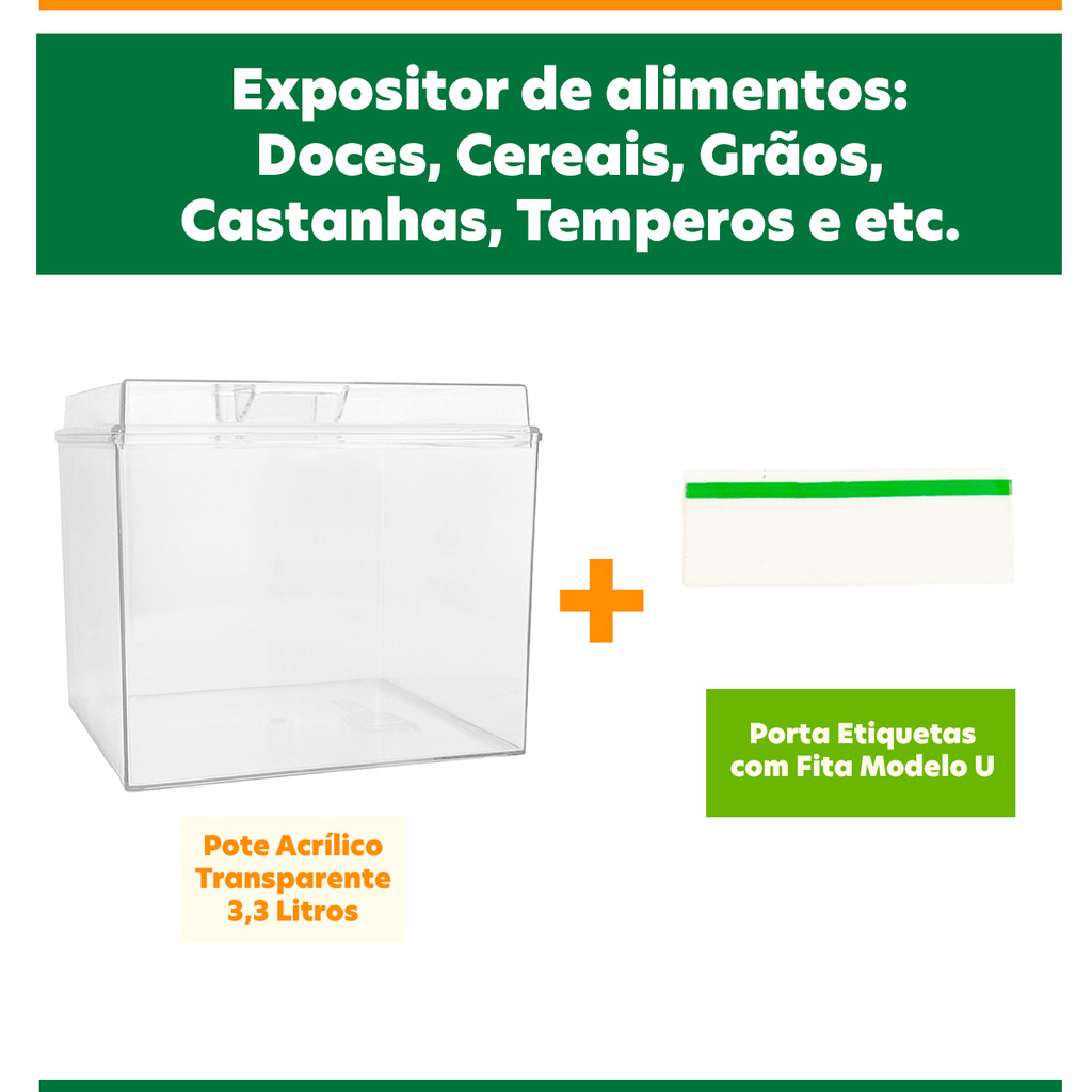 Descrição KIT 12 POTES ACRÍLICO QUADRADO COM TAMPA 3,3 LITROS Perfeito para expor, organizar e preservar alimentos com higiene e qualidade, este Pote Acrílico Quadrado de 3,3 litros é utilizado em Lojas de Produtos Naturais, Mercearias, Empórios e etc. Sua transparência proporciona uma exposição elegante dos itens armazenados. Ideal para cereais, doces, castanhas, grãos, temperos, frutas secas, biscoitos e uma variedade de outros alimentos e produtos. Pote também excelente para manter a sua despensa organizada. - Capacidade 3,3 Litros; - Expositor de alimentos: Doces, Cereais, Grãos, Temperos, Frutas Secas, Aviamentos, Têxtil e etc; - Ideal para Mercearias, Empórios, Sorveterias, Lojas Naturais, Uso Doméstico e Industrial; - Inclui display de identificação com fita modelo U; - Produto Atóxico; - Medidas Pote(LxAxC): 17,5 x 15 x 17,5; - Peso Líquido cada Pote: 305g. Entre em contato para qualquer dúvida, será um prazer atendê-lo. Mercearia Urbana – Da nossa para sua Família Desejamos fazer parte dos sorrisos dos seus dias.
