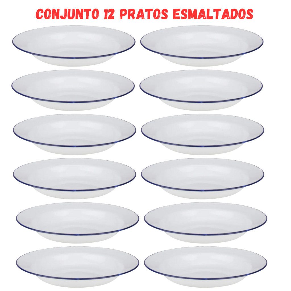| Kit 12 Pratos Esmaltados Branco 22cm Retro Rustico este produto | R$ 130,90 | — | 4.5/5 | — |