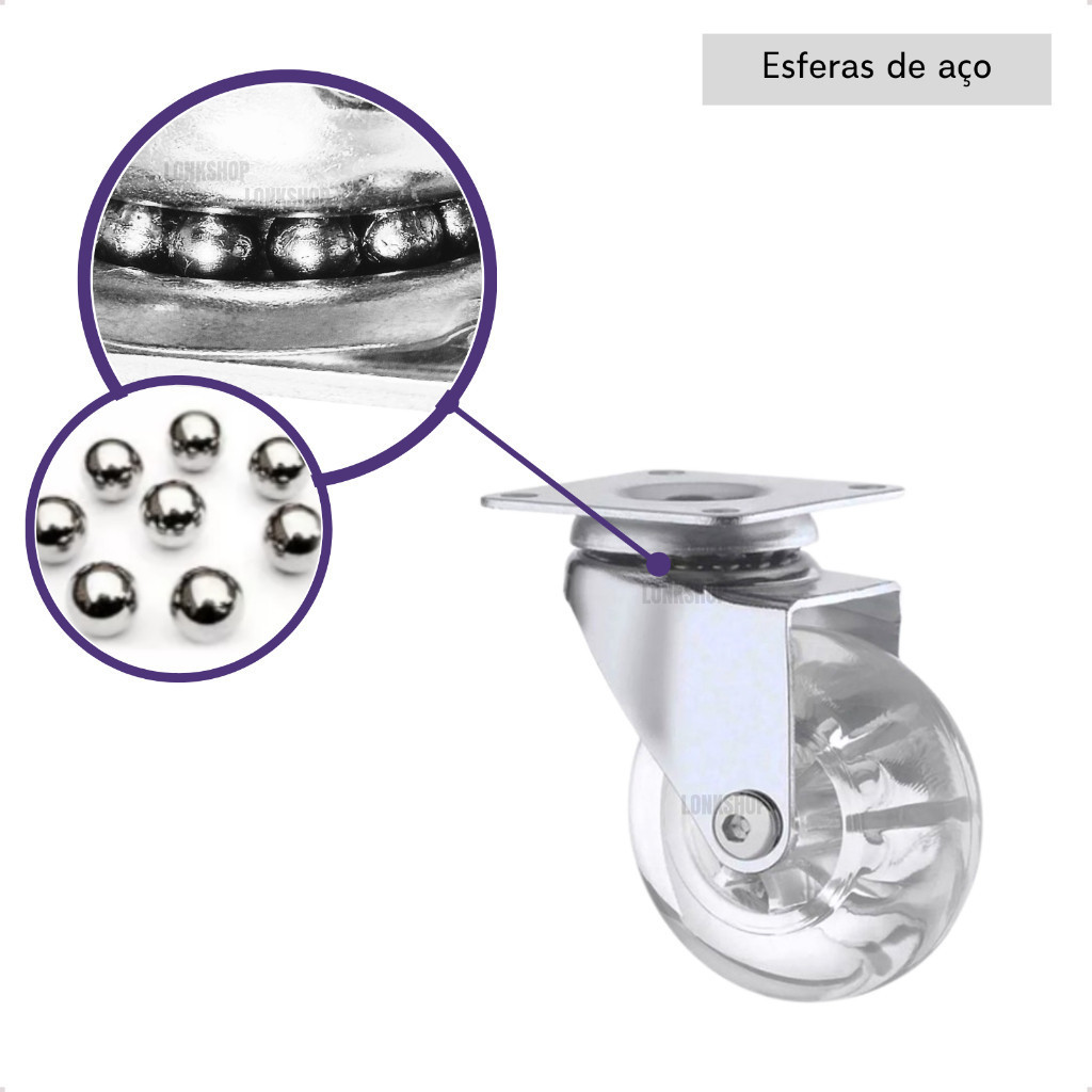 12 Rodízios giratórios SEM TRAVA - Rodízios giratórios em silicone transparente, servem para fixar em móveis, gabinetes, Balcões, mesinhas, bancadas, ou qualquer outro móvel com base suficiente para parafusa-los. - Ideal para facilitar a movimentação do objeto. - Protege de danos mecânicos causados pela movimentação. Não risca o chão. - Protege contra a umidade do contato direto ao chão. - Se aplica em Armários, Gabinetes, Balcões, Camas box, Cama baú ou qualquer outro móvel com base suficiente para parafusa-los. Características: - Altura total do rodízio: 65 mm - Diâmetro da roda: 50mm - Largura da roda: 20 mm - Carga: 40kg por roda (480kg total) - Distancia entre os furos: 32mm x 32mm - Não Risca o Piso - Antirruído - Material: Aço e Silicone - Acabamento: Zincado Conteúdo da embalagem - 12 Rodízios giratório sem trava NOTA FISCAL - Todos os pedidos são enviados com Nota Fiscal.