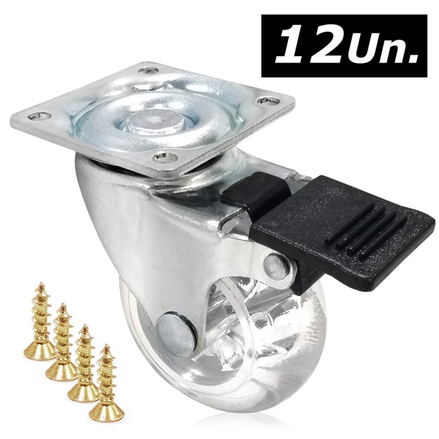 Kit 12 Rodízios Giratórios Para Móveis Rodinhas Antirisco 50mm Com Trava