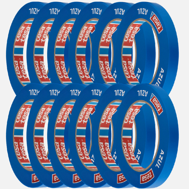 Kit 12 Rolos Fita Crepe Azul Imobiliária Tesa 40m X 18mm Proteção UV Pintura