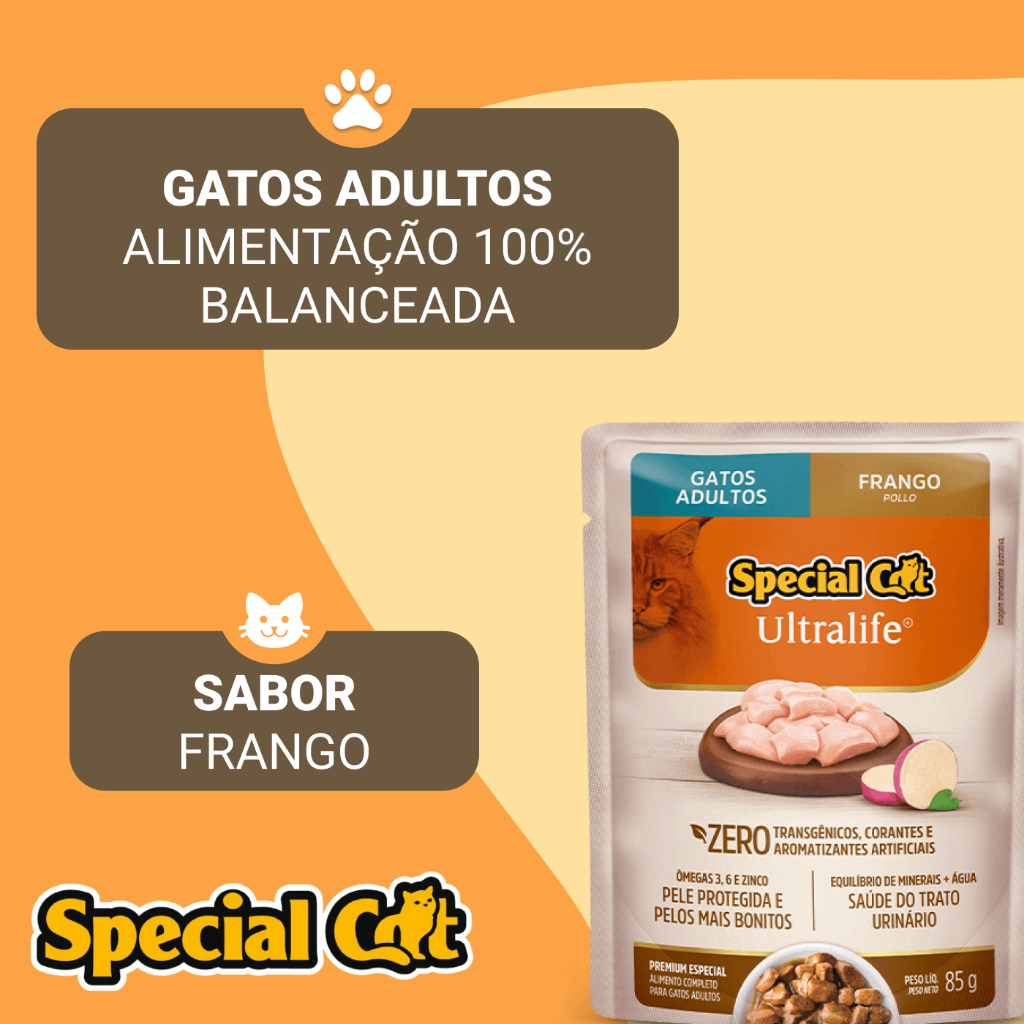 Kit 12 Sachês Special Cat Adulto Frango Ultra Life 85 g