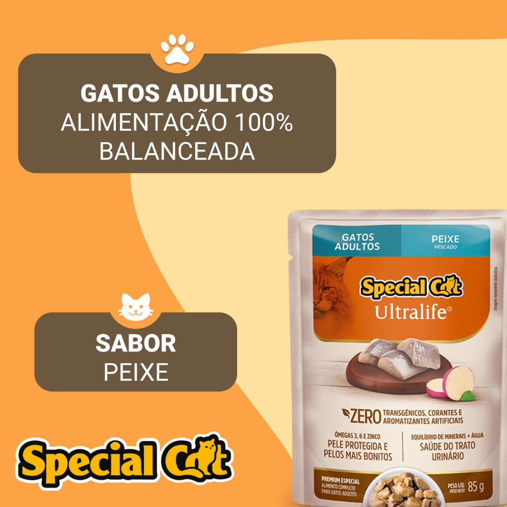 Kit 12 Sachês Special Cat Adulto Peixe Ultra Life 85 g
