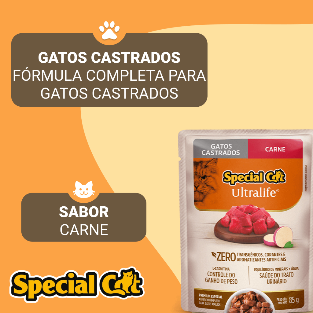 Kit 12 Sachês Special Cat Castrado Carne Ultra Life 85 g