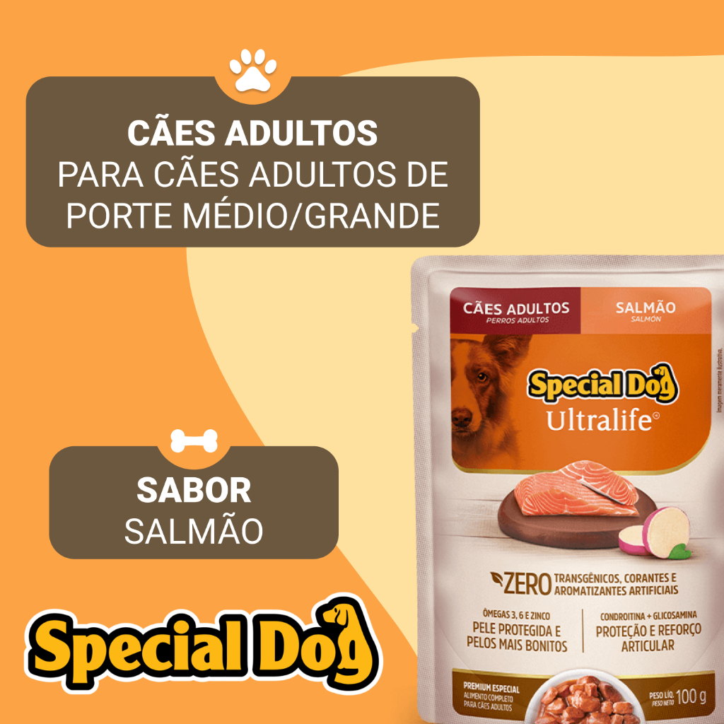 Kit 12 Sachês Special Dog Adulto Salmão Ultra Life 100 g