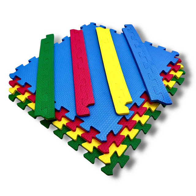 Kit 12 Tapetes Tatame Eva Bebe Infantil Colorido Premium 50x50x1cm Com bordas