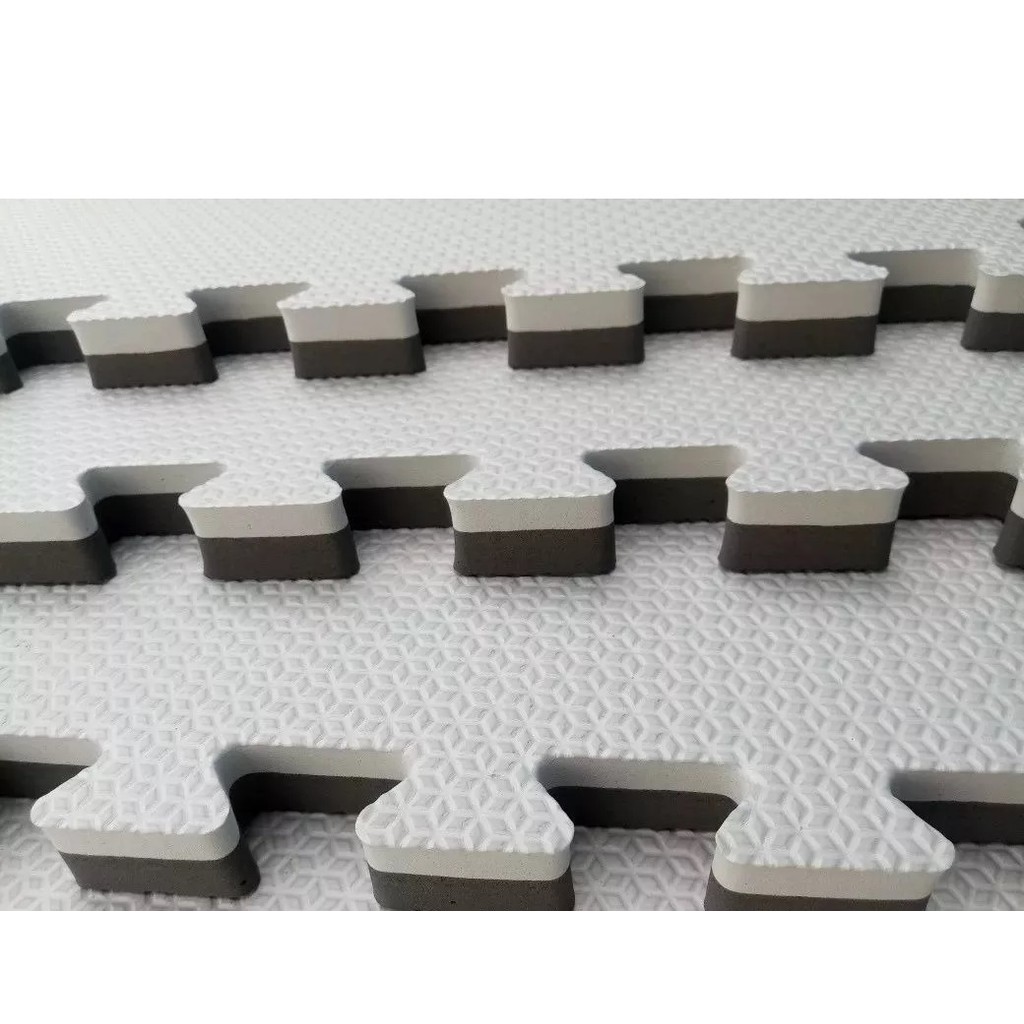 Kit 12 Tatames Tapetes EVA 50x50x4cm 40mm Dupla Face Cinza com Preto Tatame Tapete EVA 50x50x4cm 40mm LINHA PREMIUM – não trabalhamos com linha econômica (tatames com imperfeições, defeitos, deficiência de encaixe, manchas, cortes, etc) Acompanha bordas de acabamento. Medidas: 50x50x4cm (espessura 40mm) Tatame é produzido em E.V.A. de alta qualidade. Densidade adequadas garante a segurança e o conforto do usuário. Sistema de absorção de impacto. Tatame possui material que o permite retornar rapidamente ao seu formato original após ser pressionado, evitando ondulações na superfície. Fácil manuseio e montagem. Impermeável. Higiênico. Pode ser limpo com pano úmido ou lavado facilmente com água e sabão neutro. Durável Possui validade indeterminada. Para formar 1 metro quadrado é necessário 4 tatames