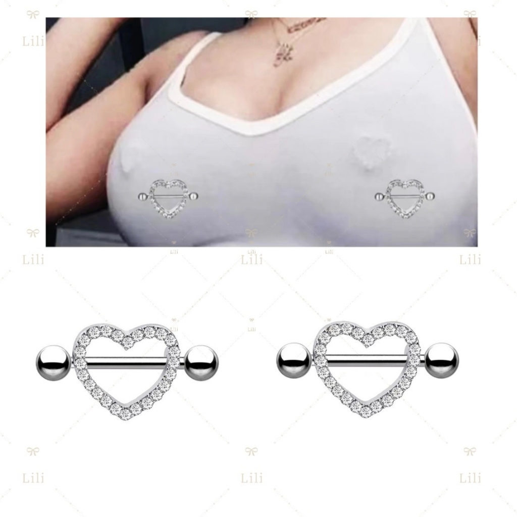 Bem vindo a loja Lili Piercing Mamilo Modelos Coracao Cravejado com Zirconia cristal Material; Aco inox Altura: 17mm Largura coração: 17mm Espessura: 1.2mm Bolinha ; 4mm Comprimento Haste: 16mm Comprimento total: 22mm