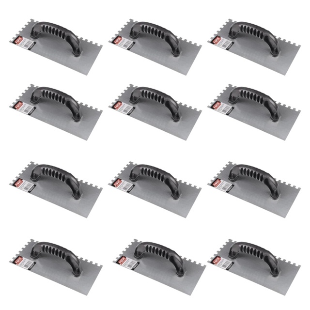 Kit 12 unidades Desempenadeira Dentada 25,5 cm x 12 cm Aço- Max Ferramentas