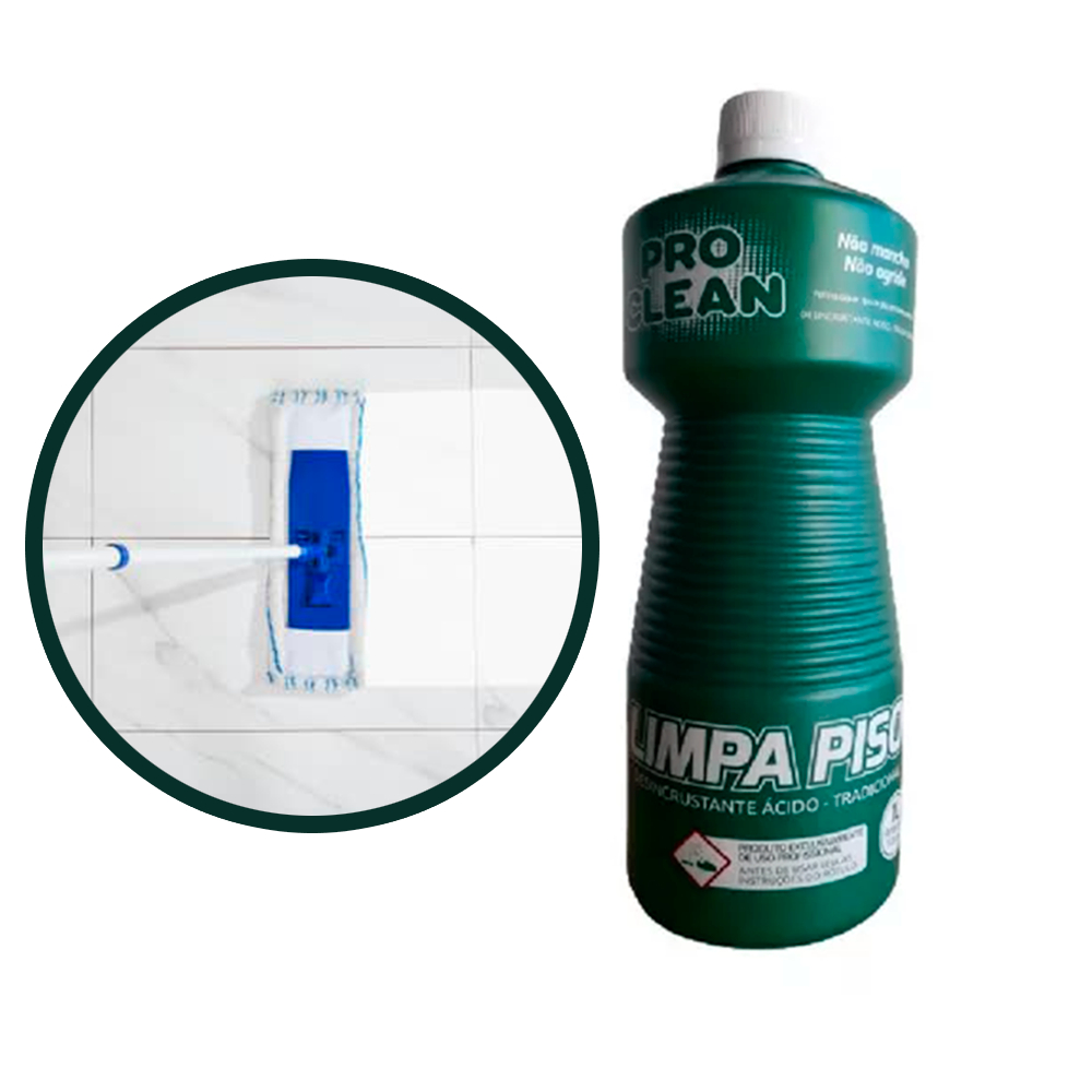 Limpador a base ácida desenvolvido para qualquer piso, ideal para as limpezas mais profundas contra manchas e incrustações. O Limpa Piso de 1 Litro da Proclean foi desenvolvido para ser utilizado em diferentes tipos de revestimentos, garantindo eficácia na limpeza sem danificar a superfície. Destinado à remoção de sujeira, manchas, gordura e outras impurezas de superfícies de pisos diversos, como cerâmica, porcelanato, madeira, laminados, entre outros. Vantagens: 1 Fórmula de Limpeza: Contém agentes potentes capazes de remover as mais profundas sujeiras, manchas e marcas com eficiência. 2 Compatibilidade com diferentes superfícies: Adequado para vários tipos de pisos, como cerâmica, porcelanato, mármore, madeira, entre outros. 3 Rendimento: Com seu volume de 1 Litro o frasco consegue oferecer rendimento de várias aplicações. 4 Aroma: O Limpa Piso da Proclean oferece limpeza sem resíduos de cheiro que incomodem. -Não indicado para aplicação em porcelanatos polidos. -Recomenda-se o teste em pequena área para comprovar seus efeitos.