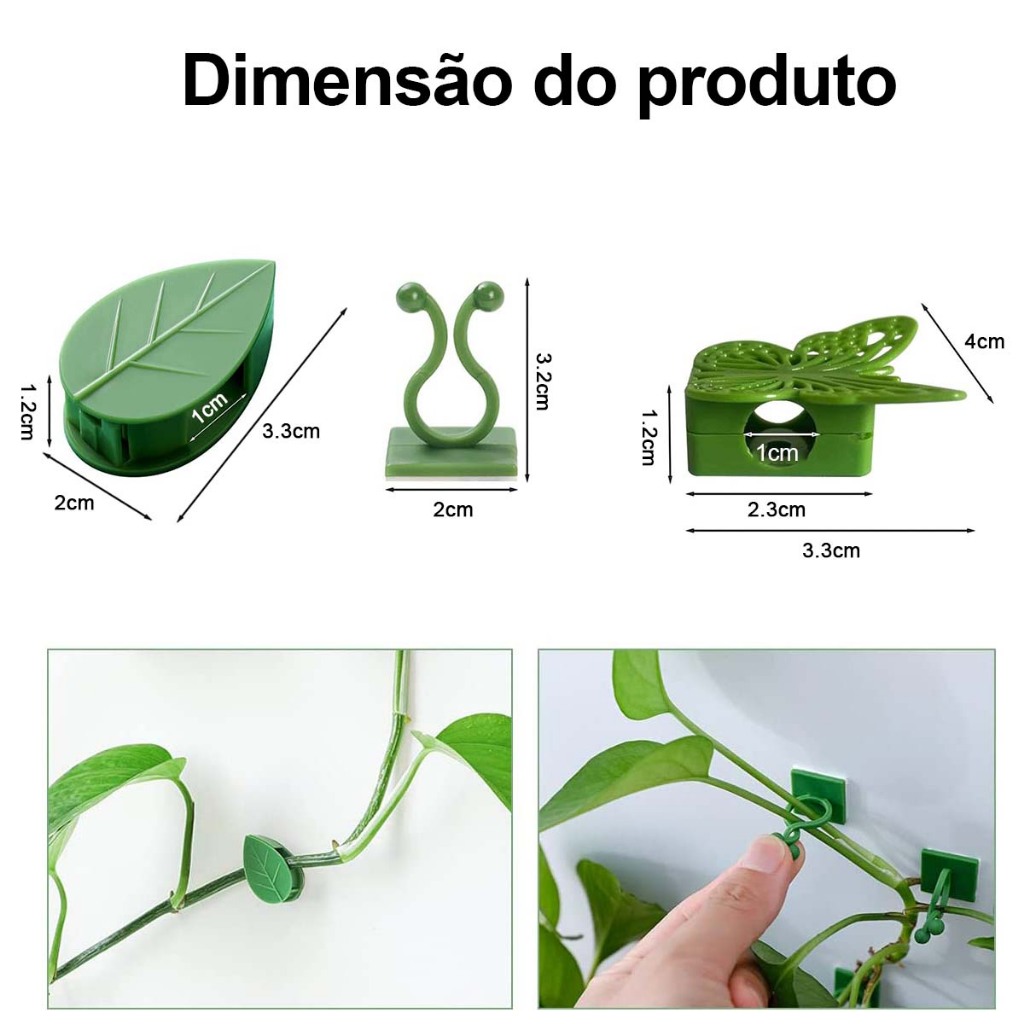 Kit 120 Folhas Clipe Adesivo Suporte de Parede Planta