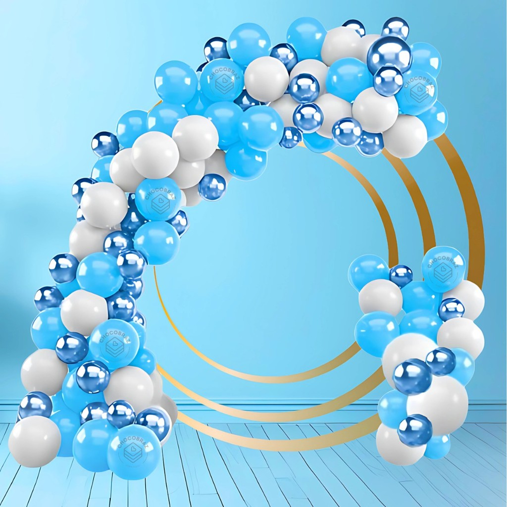 Kit 125 Balões Azul Claro 7”+ Branco 7”+ Azul Metalizado 5” -Balão Bexiga Liso/Cromado P Festa KIT02