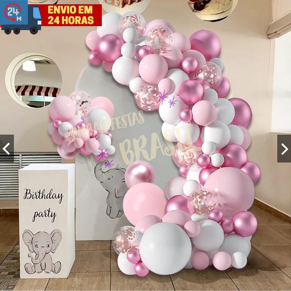Kit 125 Balões Rosa Candy (claro) Branco Cromados Rosa Para Festas e Aniversários