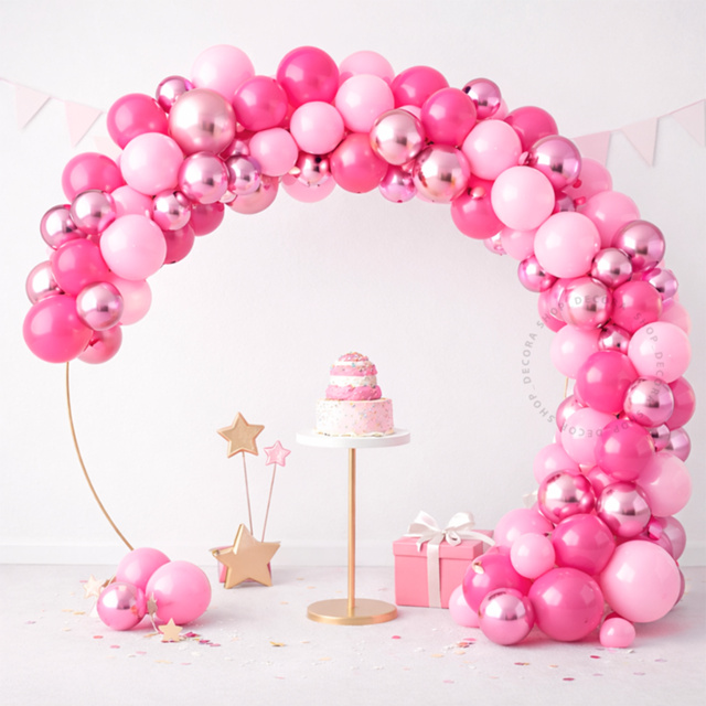 Kit 126 pçs Balões Bexigas Rosa Claro + Rosa Pink + Rosa Metalizado e Fita Arco Desconstruído Festas