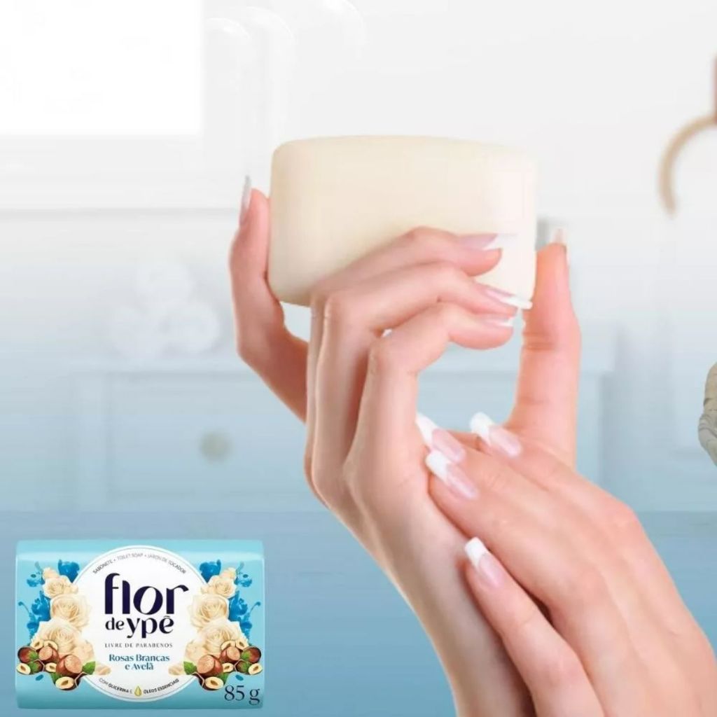 Kit 12un Sabonete Flor De Ypê Rosas Brancas E Avelã 85g