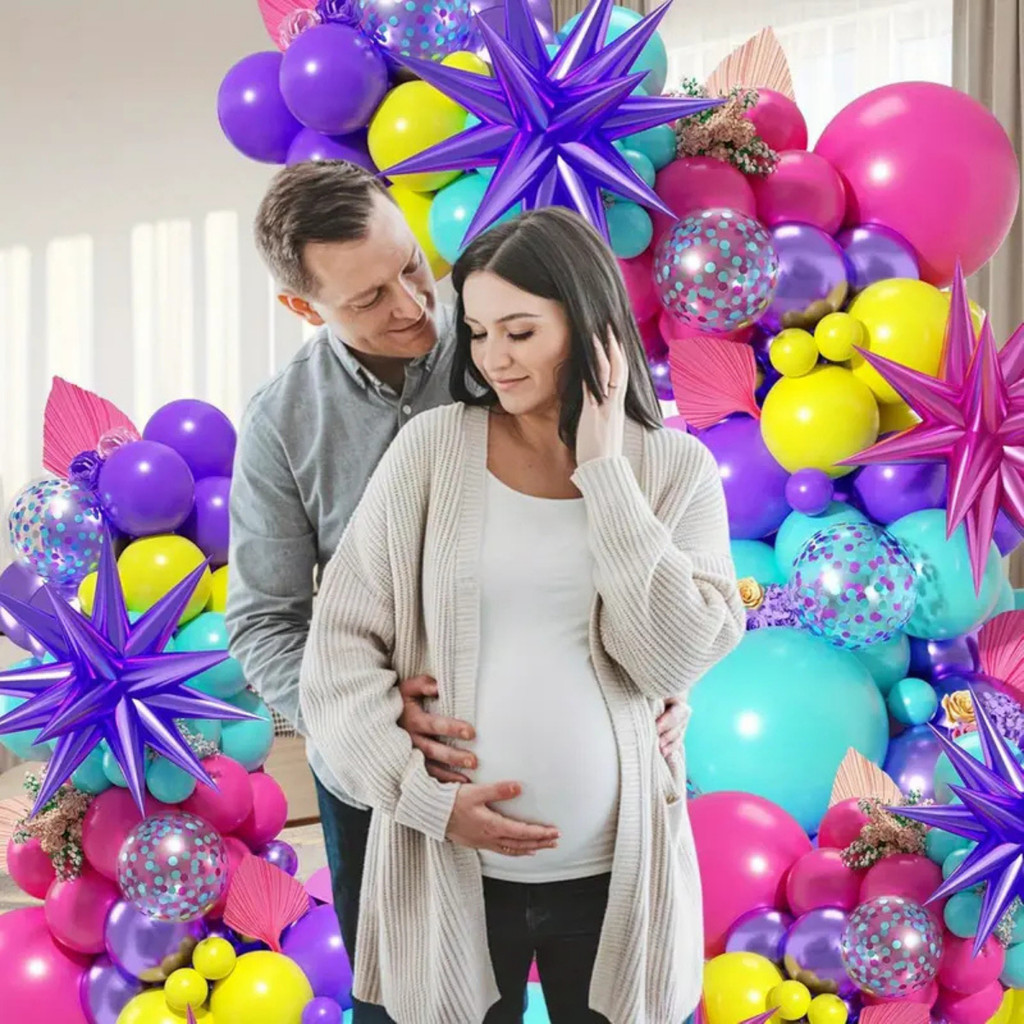 Kit 130 Balões Pink Amarelo Roxo Tiffany Metalizado Arco Desconstruído Festa + Fita
