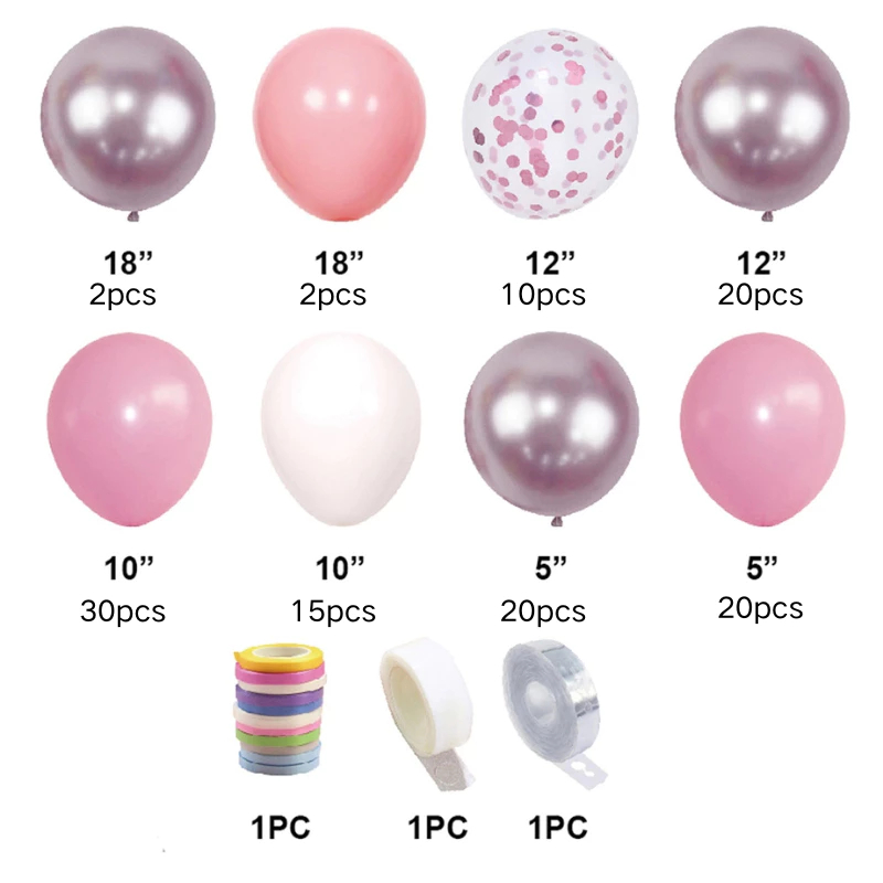 Kit 134 peças Balões 5" 10" 12" 18" Roxo rosa fosco Balão Para Festas e Aniversários
