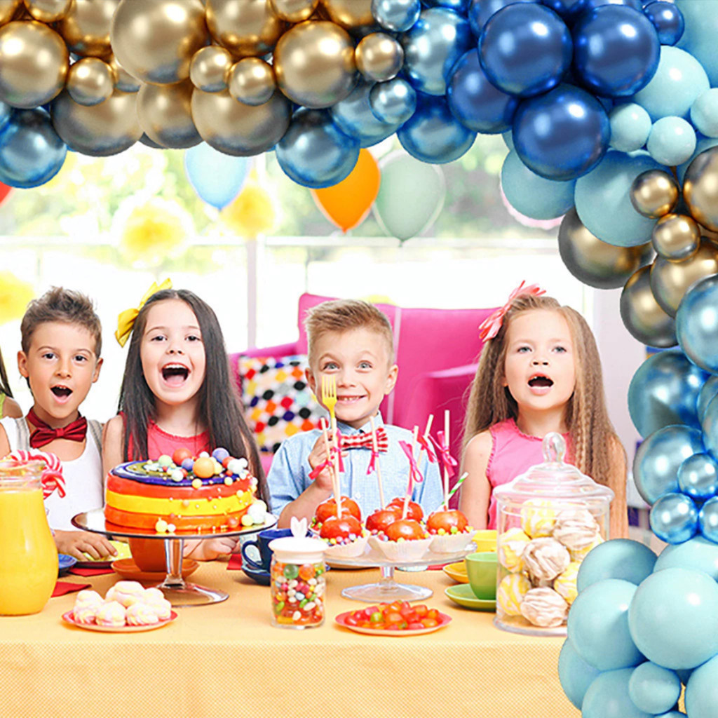 Kit 135 Balões Azul Dourado Cromado Luxo Balão Premium Arco Desconstruído + Fita Bexiga Decoração Festa Aniversario