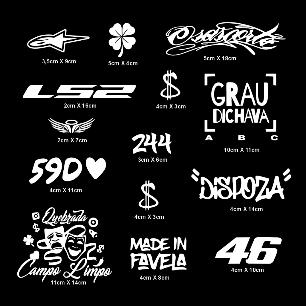 kit 14 Adesivos Quebrada Campo limpo Made in favela Osascorte dispoza Ls2 46 Asa Cifrão Grau dichava trevo 59D