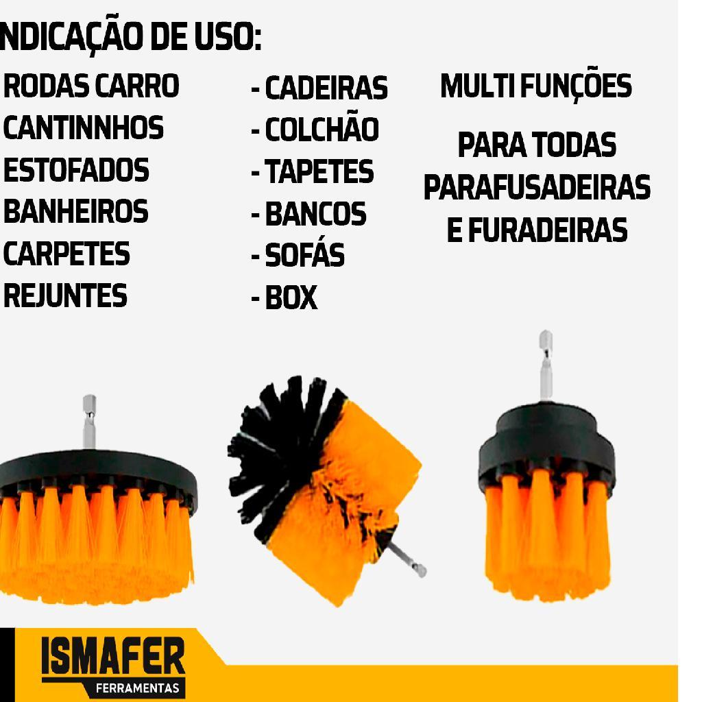 A The Black Tools é uma marca comprometida com a qualidade e as necessidades do cliente. Nosso objetivo é oferecer as melhores soluções para o seu dia a dia, com um design funcional e inovador. KIT ACESSORIOS PARA LIMPEZA 14 PEÇAS TCW1400- The Black Tools O kit com 14 escovas rotativas em nylon TCW1400 da The Black Tools é excelente para limpeza pesada, remoção de manchas profundas, velhas e difíceis, limpeza de pisos, azulejos, rejuntes, box, cantinhos, superfícies de banheiros, cozinha, carro, motos e móveis em geral; Suas cerdas são feitas de nylon durável para esfregar forte e durarem mais. o kit possui esfregões/esponjas que auxiliam na limpeza e brilho. CARACTERÍSTICAS: - Suporte de polipropileno reforçado com fibra de vidro; - Cerdas de escova de polipropileno de alta qualidade; - Encaixe universal para furadeira e parafusadeira; - Material da escova rotativa: Nylon; - Mandril em aço Inox; - RPM máximo: 12.000; - Troca rápida. ITENS INCLUSOS: - 04 Escovas rotativas (5", 4", 3,5", 2"); - 01 Base para Esfregão/Esponja; - 01 Extensor de 150mm; - 06 Esfregões de 5"; - 02 Esponjas de 5". Marca: The Black Tools Modelo: TCW1400 Garantia: 03 Meses SKU: 23519
