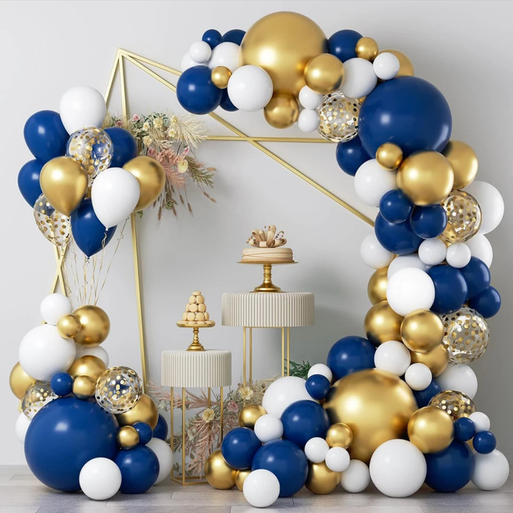 Kit 140 Balões Azul Dourado Cromado Arco Desconstruído Bexiga Festa Aniversário Criança Látex