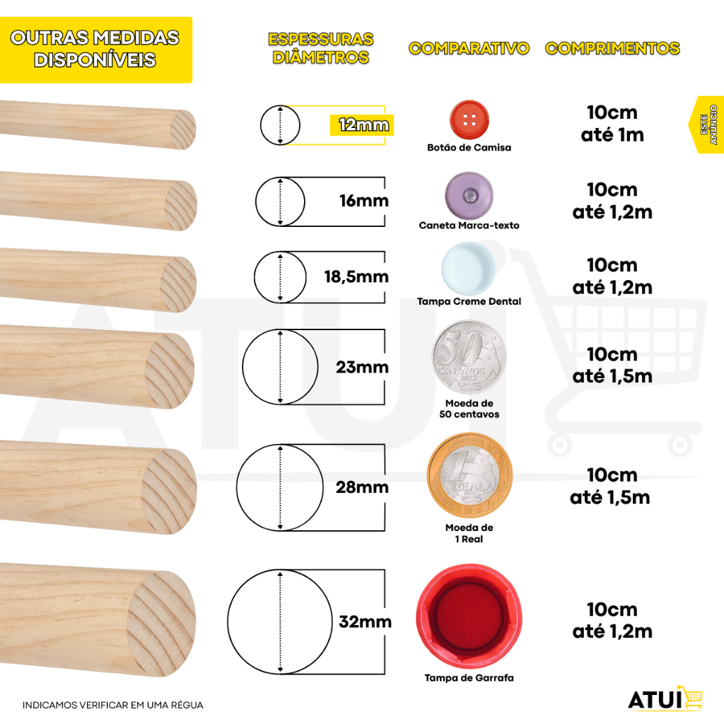 Kit com 15 Cabos de Madeira Pinus - Ideal para Bastão, Vareta, Poleiro para Aves, Artesanatos, Banner, Bandeiras, Gaiolas Calopsita etc. Este kit contém 15 cabos de madeira de Pinus, material de alta qualidade, perfeito para diversas finalidades. Cada cabo possui acabamento suave e resistente, ideal para a confecção de bastões, vareta para criação de aves, poleiros e também para projetos de artesanato, bandeiras ou banners. A madeira de Pinus é conhecida pela durabilidade e fácil manuseio, garantindo um ótimo custo-benefício para quem busca praticidade e resistência. Comprimento: A escolher. Espessura: 12mm. Kit: 15 Unidades. Disponibilidade: Pronta entrega. Pode ocorrer variação de tom na tonalidade da madeira no mesmo kit. Cabos de 12mm não são lixados, e pode ocorrer variação no tamanho de 1cm para menos ou para mais. Também trabalhamos com outras espessuras em outros anúncios.
