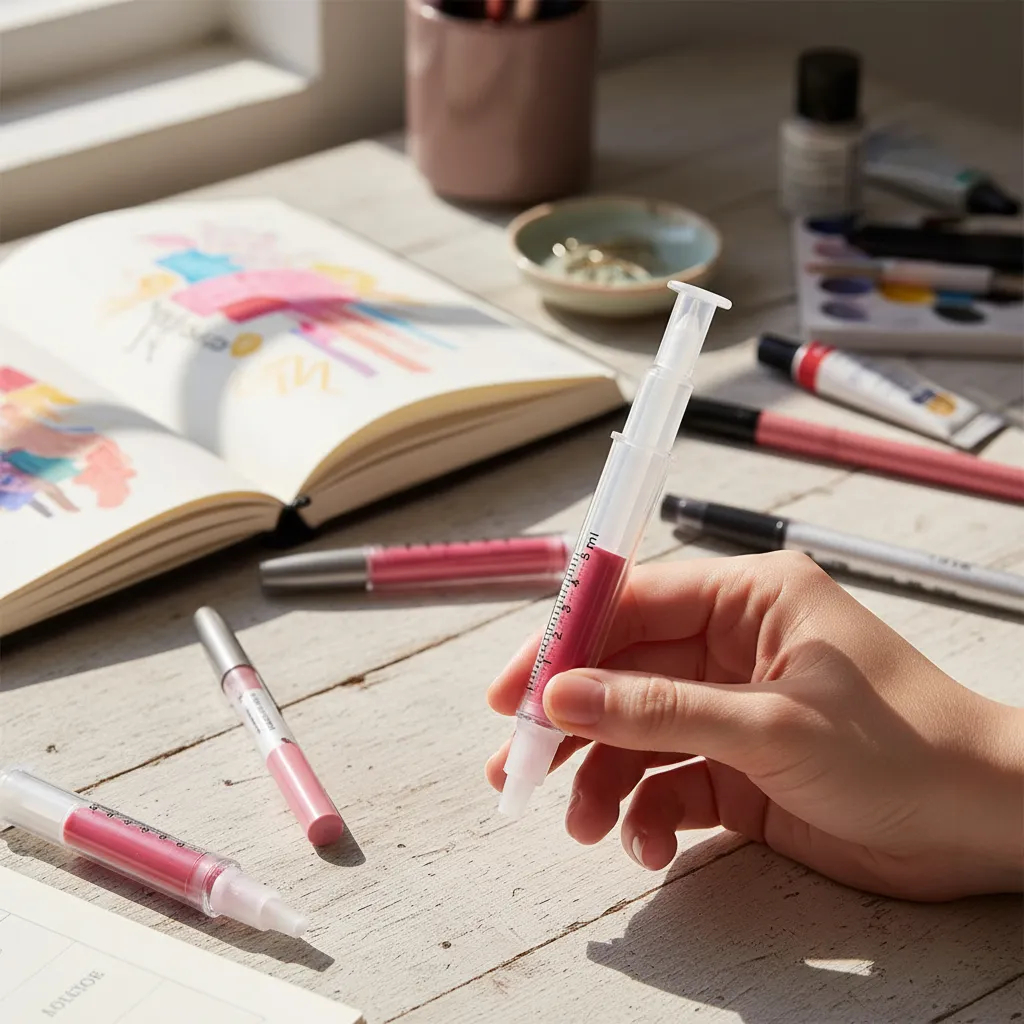 Kit 15 Canetas Esferográficas Com Marca Texto Formato Seringa