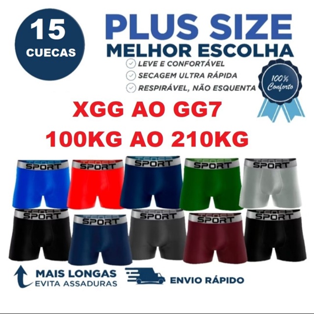 KIT 15 CUECA BOX PLUS SIZE MASCILINA BOXER XGG GG1 GG2 GG3 GG4 GG5 GG6