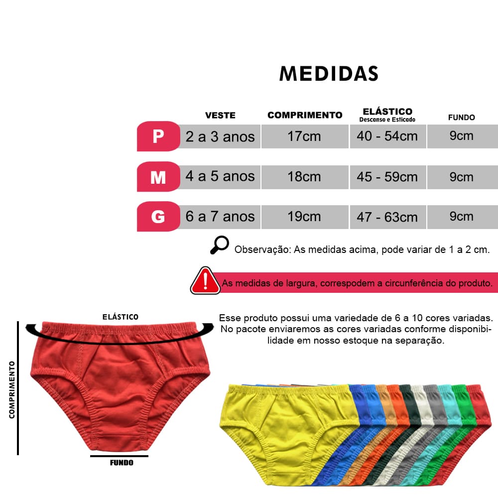 | Kit 15 Cuecas Slip Infantil Lisa Algodão Criança Revenda este produto | R$ 44,97 | — | 4.6/5 | 124 |
