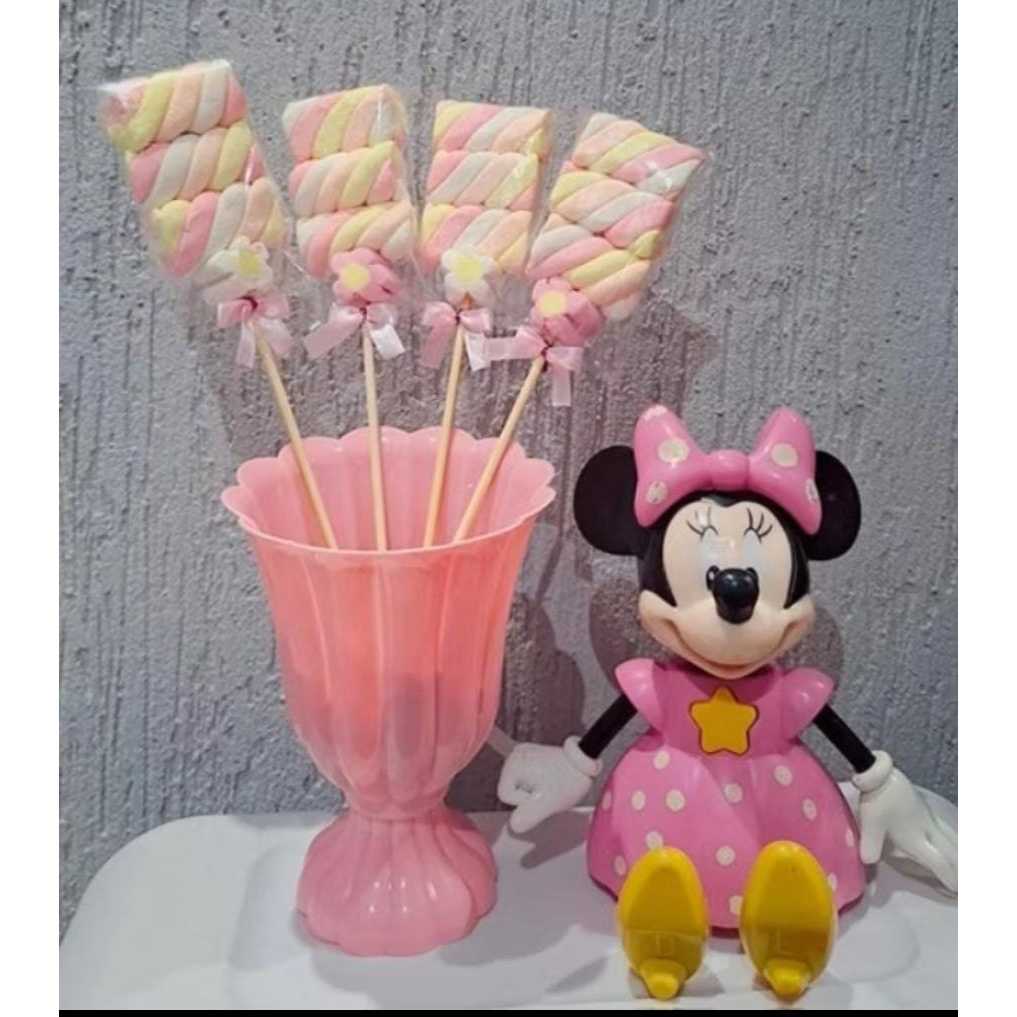 KIT 15 Marshmallow no palito colorido com flor, lembrancinha de festa, decoração festa