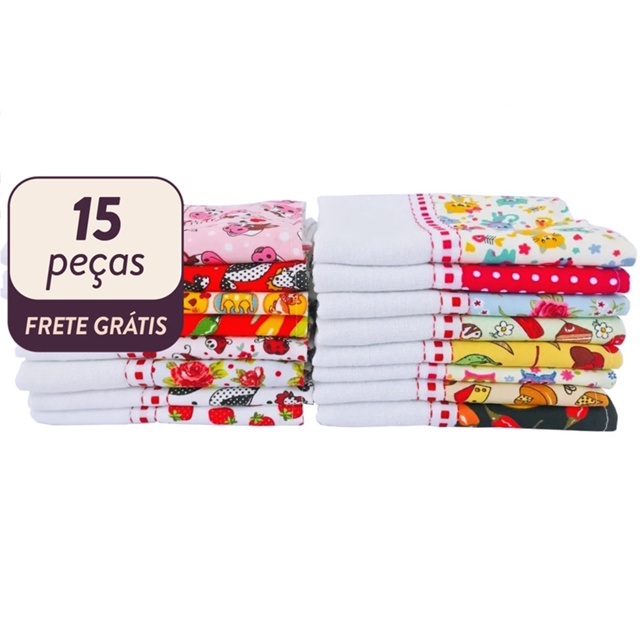 | Kit 15 Panos De Prato Atacado Estampado Bainha Revenda | R$ 50,99 | 23% | 4.6/5 | 5 |