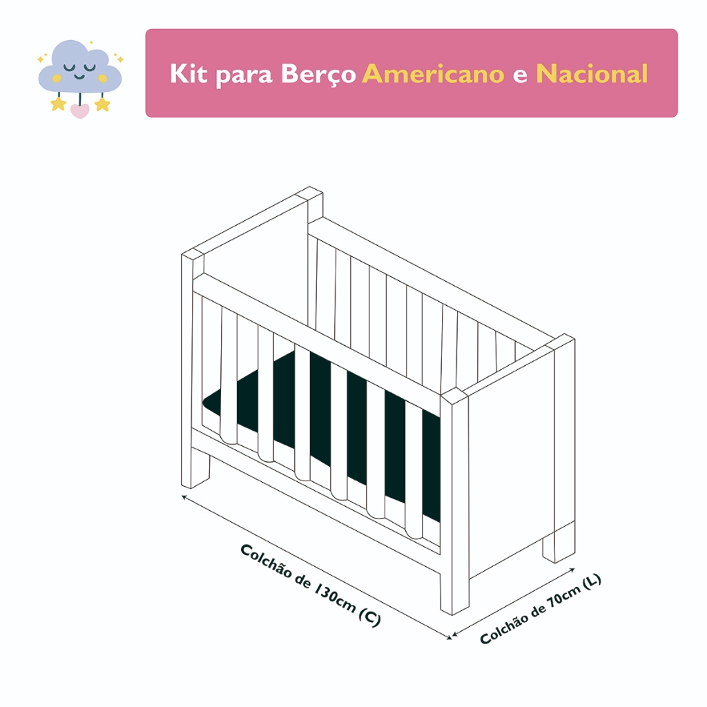 Kit Berço Americano Completo + Ninho Redutor – 15 Peças | Menino e Menina O Kit Berço Completo com Ninho Redutor oferece o máximo em conforto, segurança e elegância para o quarto do bebê. Composto por materiais de alta qualidade, ele traz o equilíbrio perfeito entre beleza e praticidade, deixando o bercinho mais aconchegante e funcional. Contém 15 Peças (Kit Berço + Ninho Redutor): 🧸 Kit Berço – 11 Peças: 1 Lençol Elástico – 1,30m x 0,70m x 0,10m 1 Protetor Cabeceira – 0,65m x 0,40m 1 Protetor Lateral – 1,25m x 0,25m 1 Protetor Lateral Trança – 1,25m x 0,15m 1 Fronha Branca – 0,28m x 0,38m 1 Lençol de Cima com Bainha – 1,30m x 0,70m 1 Almofada Nuvem – 0,35m x 0,25m 1 Bando de Mosquiteiro – 1,40m x 0,20m 1 Mosquiteiro – 4,50m x 1,50m 1 Saia de Berço – 1,30m x 0,70m x 0,25m 1 Trocador – 0,35m x 0,50m ☁️ Ninho Redutor – 4 Peças: 1 Ninho Redutor – 70cm x 55cm x 15cm 1 Colchonete – 60cm x 35cm 1 Travesseiro – 30cm x 25cm 1 Fronha – 30cm x 25cm 🧵 Composição: Tecido Estampado: 100% Algodão Tecido Liso: 50% Algodão / 50% Poliéster Enchimento: 100% Poliéster Mosquiteiro: 100% Poliamida 💎 Diferenciais do Produto: • Alta durabilidade • Materiais de primeira qualidade • Mais conforto e segurança para o bebê • Não desbota na lavagem • Acompanha Ninho Redutor completo • Zíper para retirada de enchimentos, facilitando a lavagem • Garante o bem-estar do bebê ⚠️ Informações Importantes: Produto pronto para uso (enchimentos inclusos). Acompanha as peças conforme descrição (berço não incluso). Cabeceira e laterais com zíper para facilitar a higienização. 🚚 Envio Imediato | Produção Nacional | Acabamento Premium
