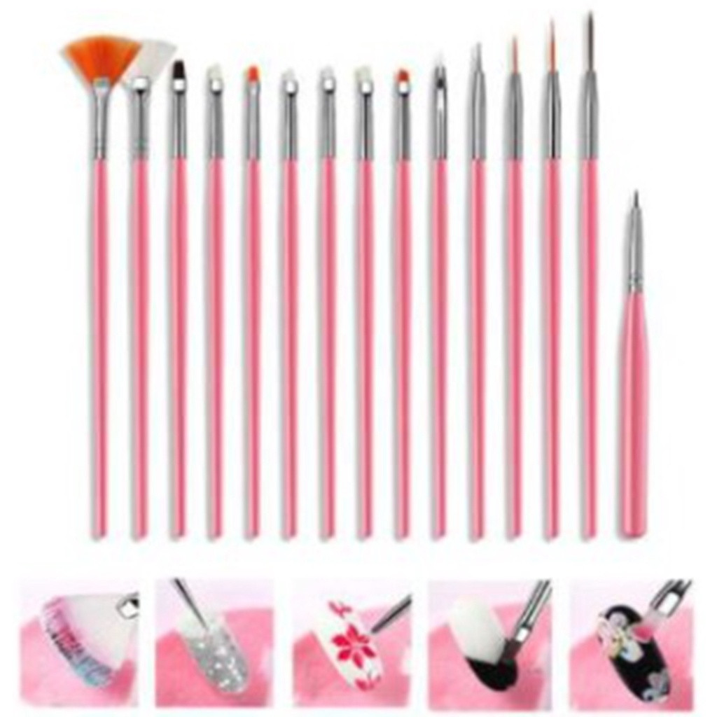 Kit 15 Pincéis + 10 Boleadores + 12 Fitas Metalizadas Nail Art Decoração Unhas Fitilho