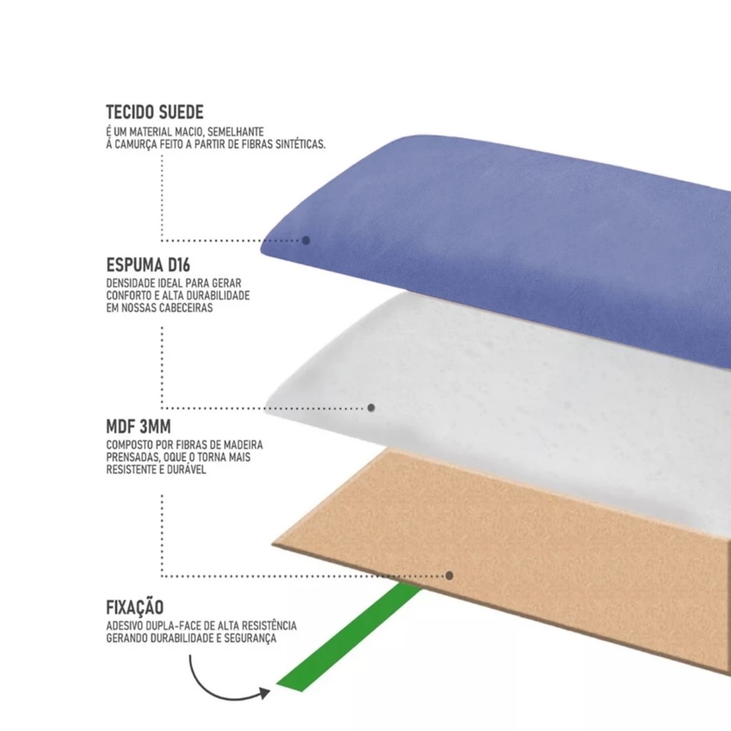 Imagens dos Anúncios apenas Ilustrativas, cor real dos módulos na seleção de cores do anúncio. realizar a compra da quantidade exata, pois pode ocorrer diferenças de cor em lote de bobinas. Fácil instalação, sem furos na parede, sem sujeira, já vem com a FITA Dupla Face ORIGINAL para fixação; A cada unidade comprada acompanha: 15 Módulo de Cabeceira 45x20cm Fita Adesiva Para Fixação Quantidade ideal: l Solteiro - 15 módulos Dúvidas Frequentes: Como é feita a instalação? A instalação é feita com a fita dupla face original, e super resistente! Pode ser colado em cima de papel de parede? Sim, pode ser aplicado em cima do papel de parede sem problemas nenhum! Já vem com fita dupla face atrás? Sim já acompanha fita dupla face original. Tem necessidade de aplicar com cola silicone junto? Não precisa aplicar silicone não, pois a cola dupla face é bem forte. A fita dupla face que vem nas placas fica em parede rebocada pintada? Sim, ela adere muito bem paredes rebocadas e pintadas.