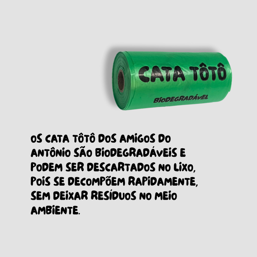 15 Rolos De Saquinhos Refil Cata Caca Biodegradável para Cães é a escolha sustentável para cuidar do meio ambiente enquanto cuida do seu pet! Feitos de Amido de Milho, esses saquinhos são 100% biodegradáveis e têm a capacidade de decomposição de 18 a 24 meses. São ideais para o passeio com cachorros, permitindo uma limpeza prática e responsável das fezes. Além disso, são perfeitos para a higiene das bandejas de gatos, garantindo um ambiente limpo e saudável. Faça a sua parte pelo planeta e proporcione o melhor para o seu pet. Características do Produto: Material: 100% Verde, fabricados a base de amido de milho junto com polietileno conforme normas ASTM D6400; • Prático para carregar; Promove um ambiente limpo; Dono consciente recolhe as fezes do seu animal; Encaixe um refil no porta-saquinhos e tenha um ótimo passeio; Produto Nacional; • Indicado para coletar fezes e manter a higiene no passeio com seu pet; Ideal para viagens e passeios; Espécie-Alvo: Cães; Porte: Todos os portes; Informações sobre alergia: Sem alergênicos; Cor: Verde Quantidade: 15 Rolinhos ( 225 Saquinhos) Quantidade saquinho por rolinho: 15 saquinhos. Características Especiais: Material resistente e duradouro. Marca: Amigos do Antônio Cata Tôtô Modo de usar: Coloque a mão dentro do saquinho como se fosse uma luva e recolha os dejetos do seu pet. Inverta a sacolinha deixando as fezes para dentro e feche com cuidado. Dimensões e peso do Produto: Medida do Produto: Tamanho Saquinho: 39,5cm x 25cm Tamanho do rolo: 6 cm x 3 cm Peso do produto: 178g Peso do produto com embalagem: 178g Cuidado: Somente para uso de animais de estimação. Não é recomendável para crianças. ***Importante**** 1. As medidas podem apresentar mínimas variações, dentro do especificado pelo Código de Defesa do Consumidor. 2. As cores podem ter variação de tonalidade por conta do registro das telas dos equipamentos eletrônicos (computador, celular etc.) Qualquer dúvida, entre em contato conosco via campo de perguntas! Estamos a total disposição! Ótimo Passeio Com seu Pet!!!