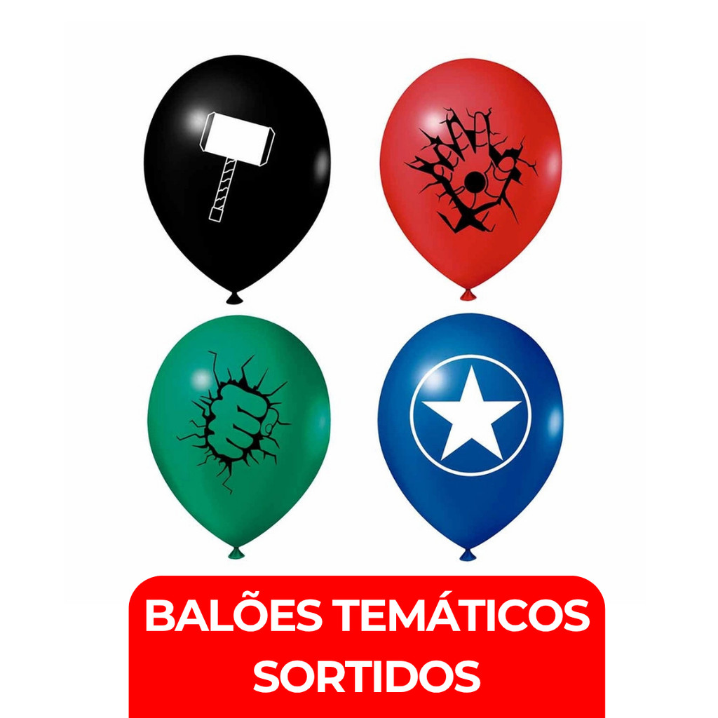 Kit 150 Balões Festa Vingadores + Fita Arco - Balão Bexiga Liso/Cromado Para Aniversários