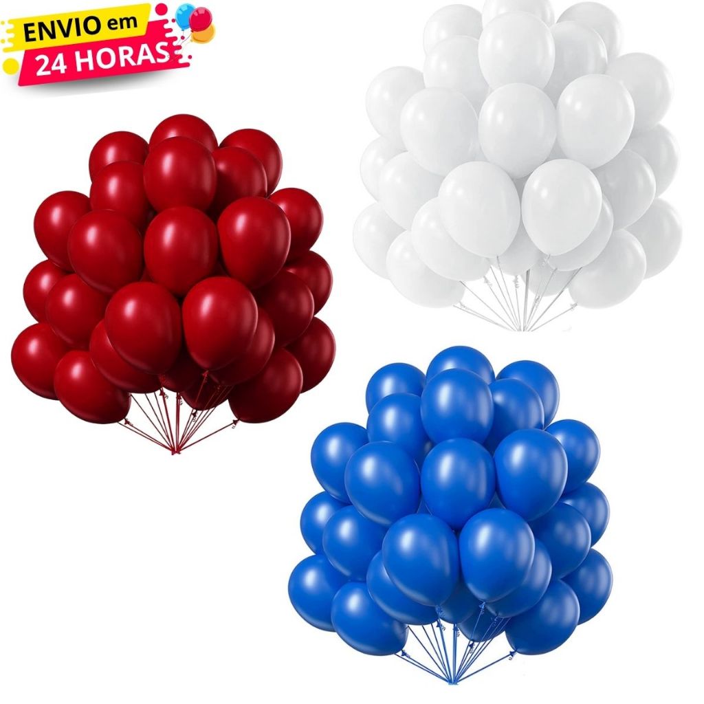 🎉 Kit de Balões para Decoração – 150 Unidades 🎈 Perfeito para montar arcos, painéis e decorações incríveis em aniversários, casamentos e eventos especiais. ✨ O que vem no kit: -50 unidades Latex 6,5 - Azul Royal -50 unidades Latex 6,5 - Branco -50 unidades Latex 6,5 - Vermelho ⚠️ Atenção: Este anúncio refere-se somente aos balões. Estrutura de arco e demais itens decorativos não estão incluídos. 🎊 Ideal para criar uma decoração prática, colorida e inesquecível! Cada balão possui sua forma e capacidade correta para ser enchido.