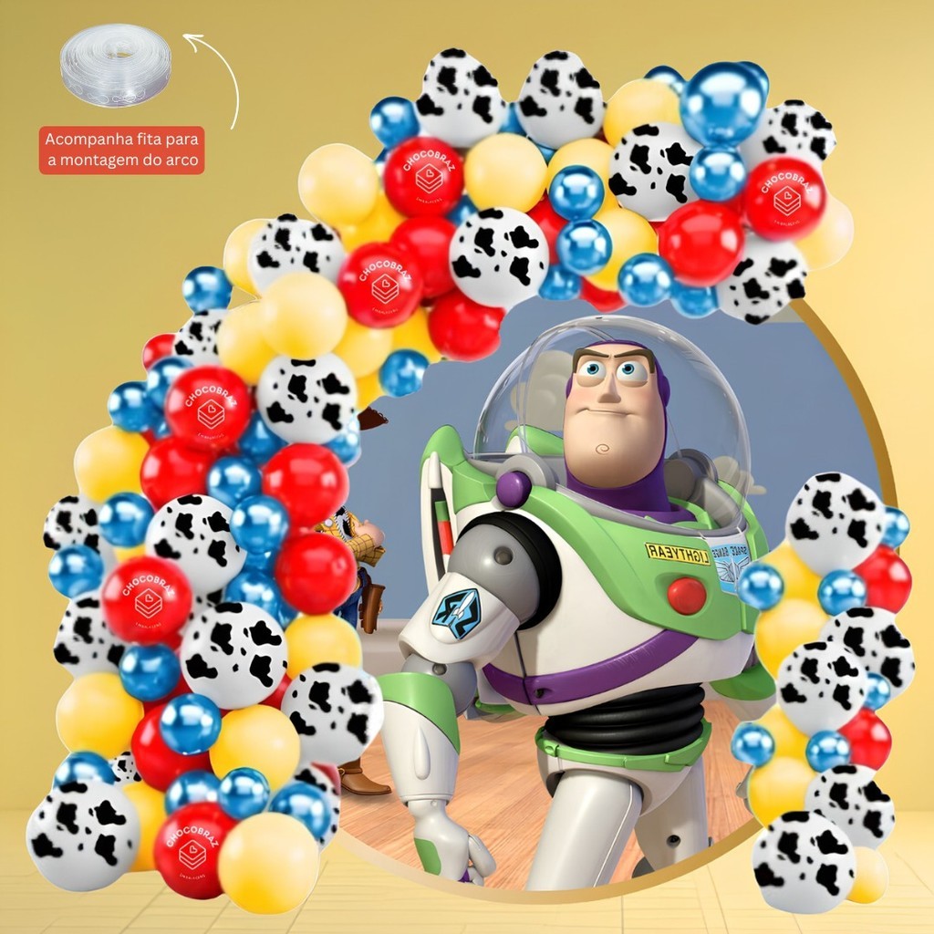 Kit 150 Balões TOY STORY AMARELO 7”+ VERMELHO 7”+ AZUL Metalizado 5” + MALHADA + FITA - KIT27+F