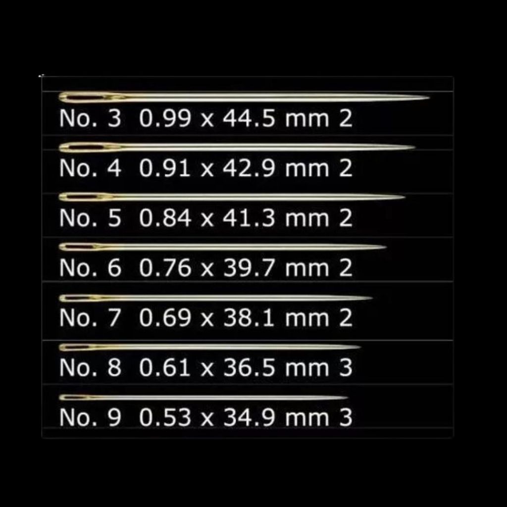 TEMOS A PRONTA ENTREGA. Enviamos muito rapidamente, em menos de 24 horas após sua compra aprovada. Somos super responsáveis com o prazo de entrega. NOTA FISCAL: Todos os nossos produtos são enviados com Nota fiscal. Itens inclusos: 16 unidades de Agulhas Bordar costura Curta Gold Eye Clover importada 3 à 9 No. 3 (0,99 x 44,5 mm) 2 pcs No. 4 (0,91x 42,99 mm) 2 pcs No. 5 (0,84 x 41,3 mm) 2 pcs No. 6 (076 x 39,7 mm) 2 pcs No. 7 (0,69 x 38,1 mm) 2 pcs No. 8 (0,61 x 36,5 mm) 3 pcs No. 9 (0,53 x 34,9 mm) 3 pcs - As agulhas de bordar ou em crewel têm olhos extra grandes para fios de algodão ou linha de bordar de fita. - Usado principalmente para bordados de algodão ou fita. - Contém: 16 agulhas por pacote. - Material : Aço