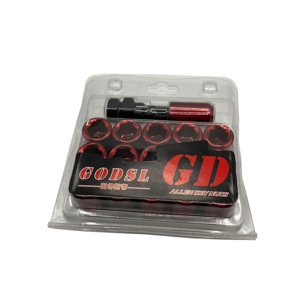 KIT 16 PORCAS LOB VERMELHO RODA ESPORTIVA FERRO + CHAVE ADAPTADORA 19/21MM