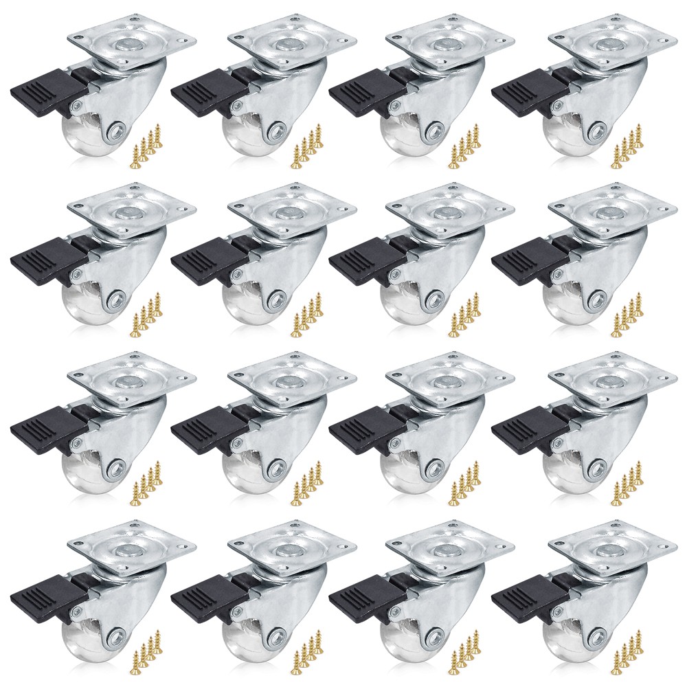 Kit 16 Rodízios Giratórios Para Móveis Rodinhas Silicone 35mm - Com Trava