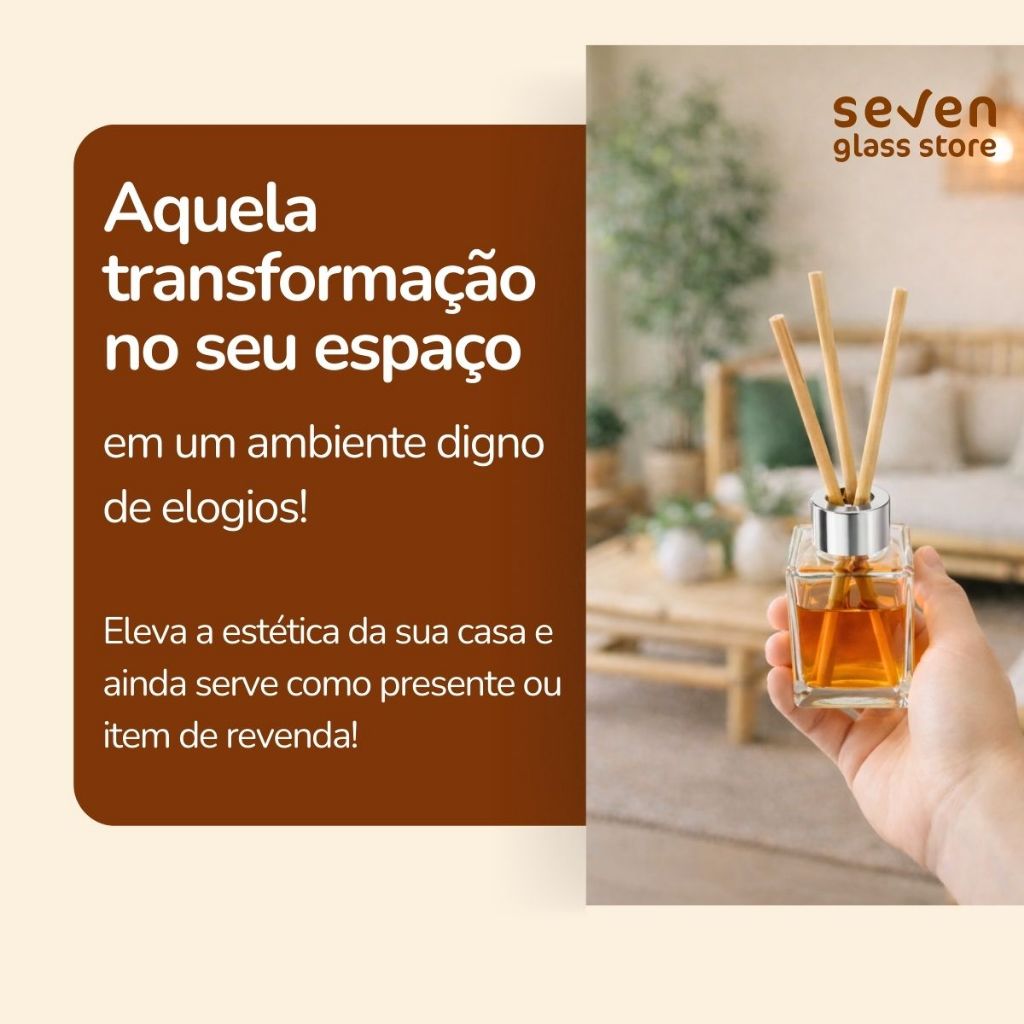 Seja bem-vindo a SevenGlass. Para garantir sua melhor experiência, recomendamos ler completamente a descrição do produto. Havendo dúvidas, utilize o campo de perguntas que nossa Equipe de atendimento terá o prazer de atende-los. Itens incluso na caixa: 16 Vidro Dice de 30 ML transparente 16 Tampa Difusor Luxo 48 Varetas de madeira (o tamanho da vareta pode variar entre 12 a 15 cm) ACOMPANHA 3 VARETAS POR FRASCO + TAMPA LUXO COM BATOQUE OS FRASCOS SÃO HOJE UM LUXO NAS DECORAÇÕES DE SEUS EVENTOS, CASA, ESCRITÓRIO, PRESENTEAR ALGUÉM ESPECIAL, MONTAR UM LINK KIT P/ PRESENTE E OUTROS. TRABALHAMOS COM DIVERSOS MODELOS DE FRASCO, CONSULTE-NOS Aproveite nossas ofertas, as entregas estão voando! SevenGlass Oficial.