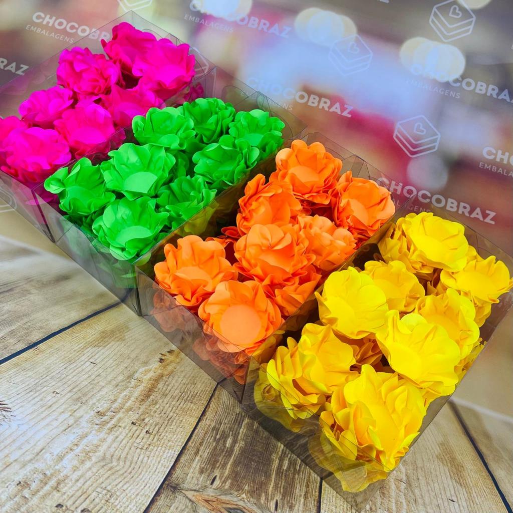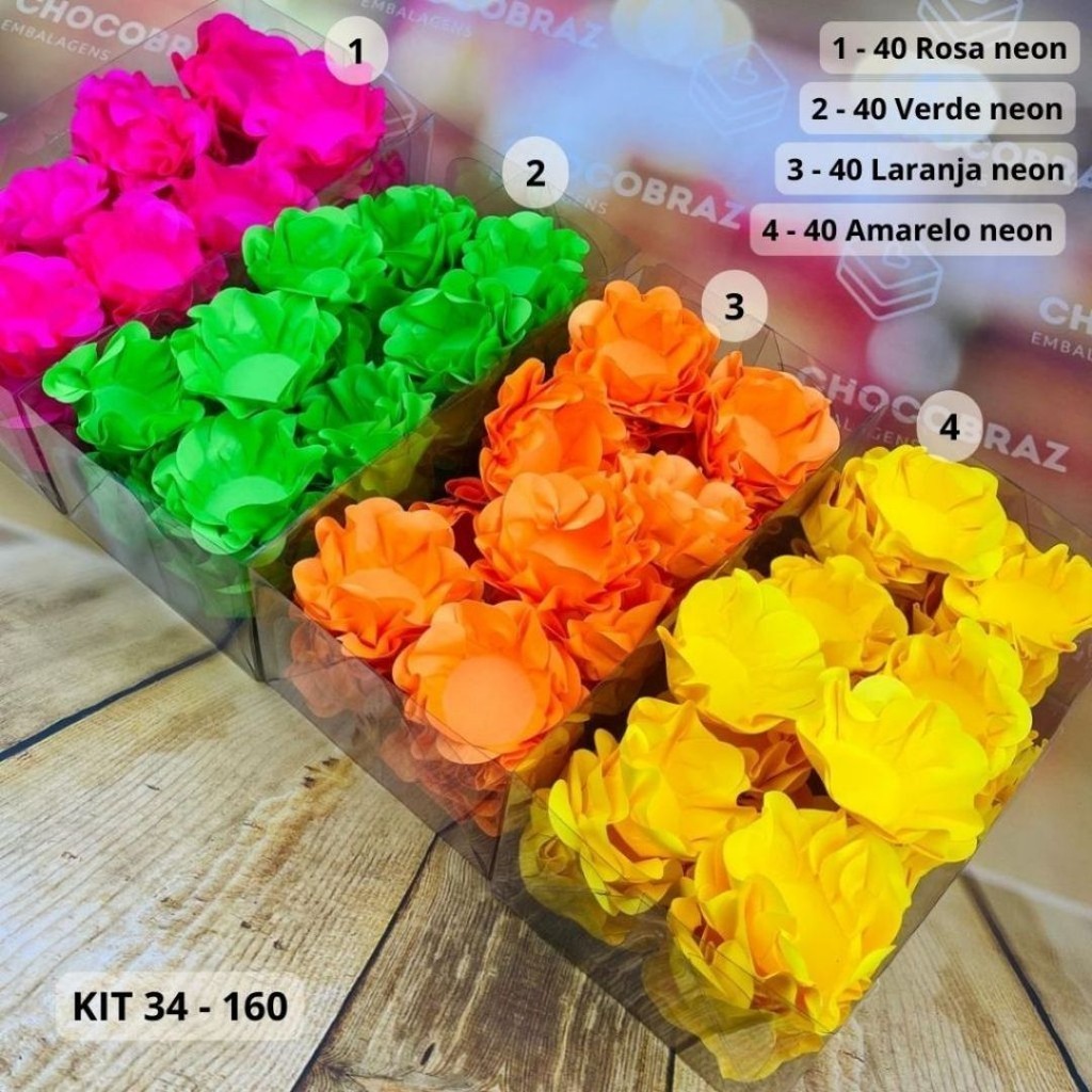 KIT 160 Forminhas Para Doces Finos ROSA NEON + VERDE NEON + LARANJA NEON + AMARELO NEON