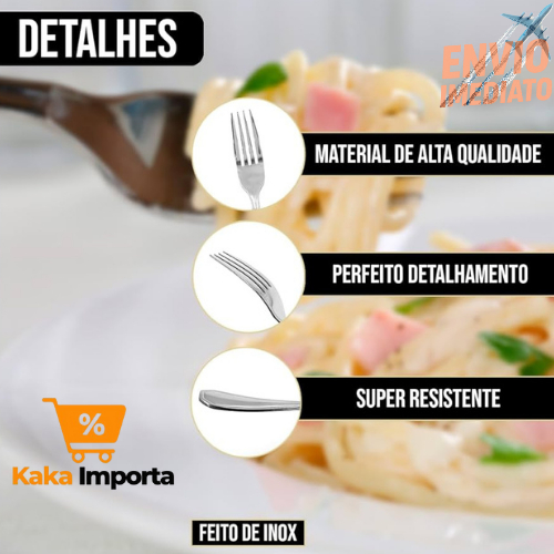 Seja bem-vindo(a) à nossa Loja Kaka Importa Desejamos ótimas compras e uma excelente experiência! PRODUTOS COM QUALIDADE EM DURABILIDADE COM PREÇOS DE ATACADO? VOCÊ SÓ ENCONTRA AQUI! ********ATENÇÃO A QUANTIDADE NA VARIAÇÃO****** 6 UNIDADES - 12 UNIDADES - 18 UNIDADES Kit 18 Garfos de Mesa Aço Inoxidável de Alta qualidade para Uso Diário e Profissional Buffet Os Talheres com 18 peças é ideal para quem busca qualidade e elegância em suas refeições. Torne a sua cozinha ainda mais completa e preparada para o consumo de diversos tipos de pratos! Talheres são utensílios utilizados para preparar as refeições e para auxiliar na hora de se alimentar. Contudo existem diversos tipos de talheres, cada um destinado para o consumo de alimentos ou preparações diferentes. Para sua cozinha se tornar ainda mais completa e devidamente preparada para servir os mais variados tipos de pratos. GARFO DE MESA Assim como há uma faca clássica, existe o garfo de mesa, que é aquele garfo básico, utilizado no nosso dia a dia. Ele possui um tamanho maior, com 4 dentes iguais, levemente curvados e com o mesmo espaçamento. Muito funcionais para diversos tipos de alimentos, como arroz, carnes e refogados, por exemplo. Conteúdo Da Embalagem: - 18 Garfos Medidas: • Peso: 0,20 g • Comprimento: 19 cm • Largura: 2,5 cm • Espessura: 1,5 mm ✅ Material: Aço inox ✅ Alta durabilidade e resistência ✅ Não enferruja ✅ Fácil de limpar ✅ Design simples e elegante ✅ Ideal para uso doméstico ou profissional Uma opção prática, econômica e indispensável para qualquer cozinha! RECOMENDAÇÕES: - Lave apenas com esponja macia e detergente neutro ou sabão. Produtos abrasivos como palha de aço podem prejudicar o brilho e riscar. - Enxágue bem para retirar resíduos de produtos de limpeza para que não prejudiquem o inox. - Utilize água quente, sempre que possível, para renovar o brilho. - Seque logo após lavar, mesmo ao lavar na lava louças; Isso evitará manchas que podem ser causadas pelo cloro presente na água. - Ao lavar e armazenar evite atrito entre os talheres, sempre que possível, para mantê-los sem riscos. - Mantenha longe de locais úmidos e superfícies quentes para evitar manchas e descoloração. Dúvidas? Entre em contato via chat. 📦 Envio rápido e seguro com Nota Fiscal Garantimos a qualidade do produto e a agilidade na entrega para que você receba seu pedido o quanto antes. 🀀Por que escolher Kaka Importa? Aqui você encontra produtos de alta qualidade, envio rápido e todo o cuidado para que sua experiência seja a melhor possível. 📦 Entrega imediata e qualidade garantida pela Kaka Importa!